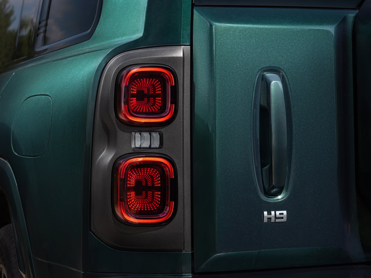 Haval H9 получил более брутальный внешний вид, по сравнению с предшествующей моделью, что вполне соответствует требованиям современной автомобильной моды. Экстерьер внедорожника во многом определяет хромированная решетка радиатора, биксеноновые фары, панорамная крыша с электроприводом и 18-дюймовые колесные диски. В базовом оснащении Н9 – LED-противотуманки с функцией подсветки поворотов. Имитация крепежных винтов на решетке выглядит вполне натурально. Угловатые фонари имеют необычный оптический блок, в котором светодиоды как бы уходят в перспективу, что выглядит очень эффектно.